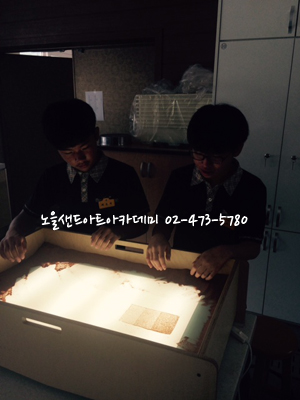 샌드아트 수업이 진행중입니다.