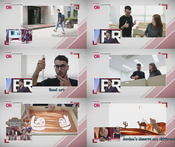 아리랑TV <Bring It On> 시즌3은각 나라의 대표들이 나와서 4분동안자국의 문화를 소개하는 프로그램인데요요르단은 주변이 사막이라 모래가 굉장히 친근할텐데요르단에서 온 모하마드씨가 아카데미에 방문하셔서한국의 샌드아트 체험을 하고 가셨습니다.노을샌드아트아카데미 최은준 강사