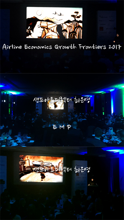 영국 'Airline Economics Growth Frontiers 2017' EMP그룹 샌드애니메이션 라이브 퍼포먼스